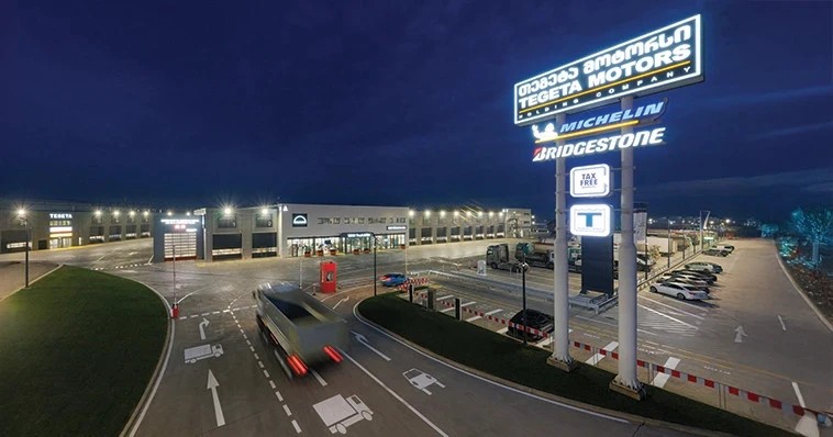 სერვისის რეგიონული ჰაბი, რომელიც თბილისის შემოვლითი გზის 36-ე კილომეტრზეა განთავსებული, სატვირთო მანქანებს, ავტობუსებსა და კომერციულ ტრანსპორტს ერთ სივრცეში სრულ მომსახურებას უწევს. „თეგეტა მოტორსის“ გეზის ფილიალი დაახლოებით ერთი წლის წინ ამოქმედდა და თვის ჭრილში 1500-მდე ავტოტრანსპორტს ემსახურება. უახლოეს მომავალში ამ ციფრის 2500-მდე გაზრდაა დაგეგმილი. სერვისცენტრისათვის განკუთვნილი ოთხი ჰექტარი ტერიტორია სხვადასხვა დანიშნულების ოთხ ბლოკს მოიცავს. სივრცეებს ერთი კონცეფცია აერთიანებს: მომხმარებელს ერთი ფანჯრის პრინციპით და მაღალტექნოლოგიური დანადგარებით მოემსახურონ - იქნება ეს სავალი ნაწილის შემოწმება, ძრავა თუ ელექტრობა. ცალკე ბლოკები ეთმობა სამღებრო-სათუნუქე და სამაცივრო სისტემების შეკეთებას.
