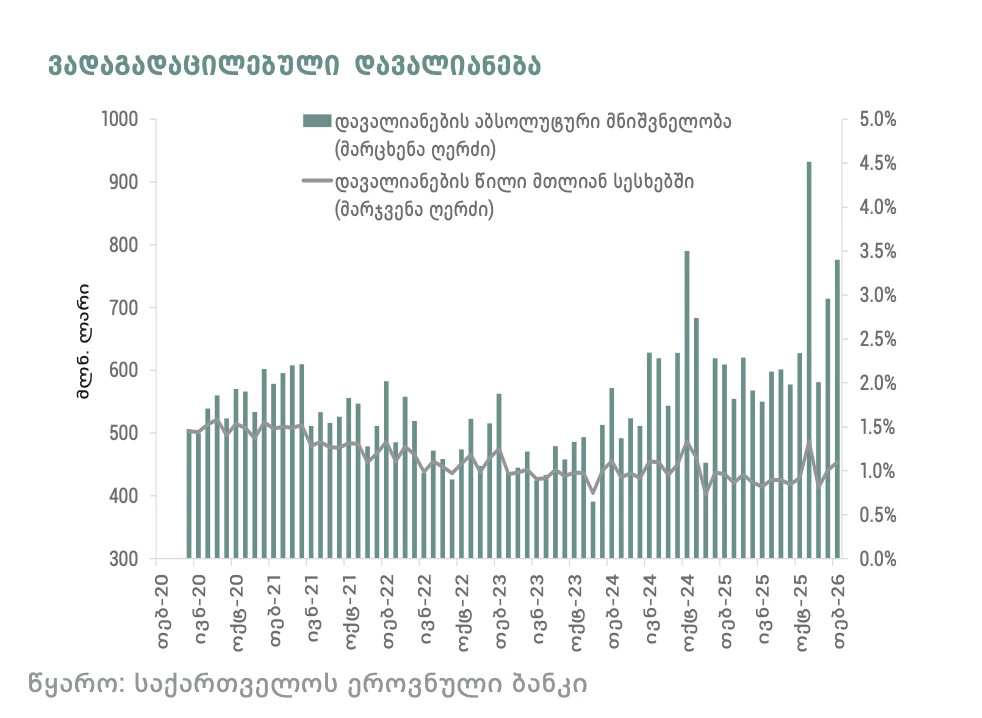 თებერვალში, ვადაგადაცილებული სესხები, წინა თვესთან შედარებით, 62 მლნ ლარით გაიზარდა და 776.1 მლნ ლარს გაუტოლდა, - ამის შესახებ ნათქვამია ეროვნული ბანკის აპრილის „თვის მიმოხილვაში“.