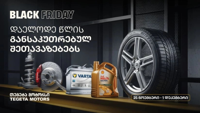 „თეგეტა მოტორსი“, კომპანია, რომელსაც საავტომობილო სერვისებისა და პროდუქტების ყველაზე მრავალფეროვანი არჩევანი, მომსახურების მაღალი ხარისხი და ფილიალების ფართო ქსელი აქვს, black friday-ს კვირეულისთვის ემზადება. 25 ნოემბრიდან ერთი კვირის განმავლობაში მსუბუქი ავტომობილების მფლობელებს განსაკუთრებული შეთავაზებები ელოდებათ. „თეგეტა მოტორსის“ მომხმარებლებს შესაძლებლობა ექნებათ, მსოფლიო ბრენდების პროდუქცია დიდი ფასდაკლებით შეიძინონ და ზამთრის სეზონს სათანადოდ მომზადებულები შეხვდნენ.