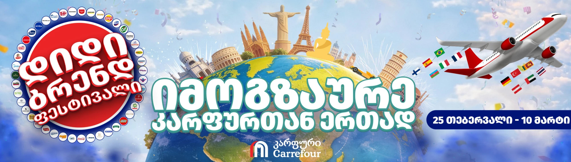 ესტუმრე „კარფურს“ 25 თებერვლიდან 10 მარტის ჩათვლით და ისარგებლე დიდი ბრენდ ფესტივალის შეთავაზებები, მთელი საქართველოს მასშტაბით
