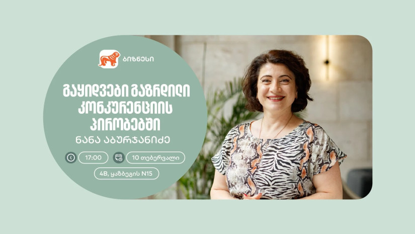 ამჯერად, საქართველოს ბანკის ორგანიზებით, 10 თებერვალს ვორკშოპი „გაყიდვები გაზრდილიკონკურენციის პირობებში“ გაიმართება, რომელსაც ნანა აბურჯანიძე, ბიზნეს საკონსულტაციო კომპანია სოლუშენერის დამფუძნებელი და დირექტორი გაუძღვება.