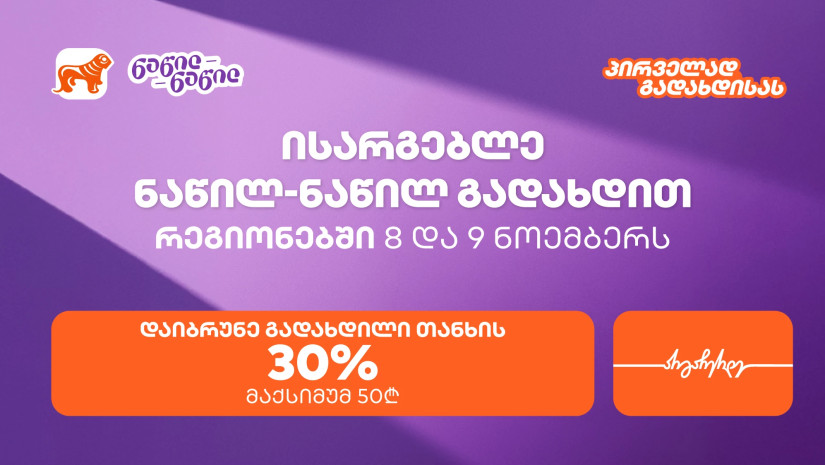 მხოლოდ 8 და 9 ნოემბერს, ის მომხმარებლები, რომლებიც პირველად ისარგებლებენ საქართველოს ბანკის ნაწილ-ნაწილ გადახდით, 30%-იან ქეშბექს მიიღებენ (მაქსიმუმ 50 ლარს). შეთავაზება ვრცელდება საქართველოს ბანკის ყველა იმ პარტნიორ მაღაზიაში, სადაც  ნაწილ-ნაწილით გადახდა ხელმისაწვდომია.