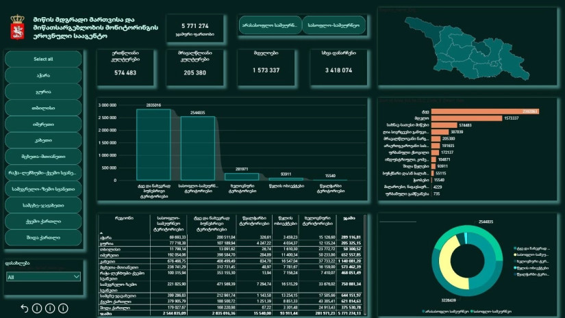 მონაცემები მოიცავს ინფორმაციას როგორც სასოფლო-სამეურნეო, ასევე არასასოფლო სამეურნეო მიწების შესახებ, მათი ფართობებისა და რეგიონული განაწილების მიხედვით. პლატფორმა მომხმარებლებს საშუალებას აძლევს, ერთ სივრცეში მიიღონ განახლებადი ინფორმაცია როგორც სტატიკური ცხრილების, ასევე ინტერაქტიული გრაფიკების, დიაგრამებისა და შედარებითი ანალიზის ფორმით.