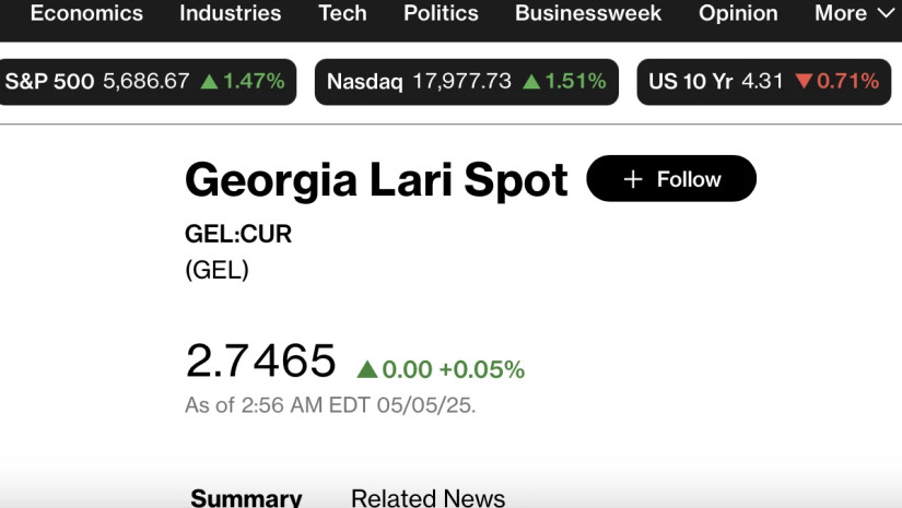 Bloomberg-ის სავაჭრო პლატფორმაზე 11:00 საათისთვის ერთი დოლარი 2.7465 ლარად ივაჭრება.