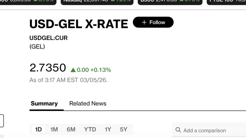 Bloomberg-ის სავაჭრო პლატფორმაზე 12:00 საათისთვის ერთი დოლარი 2.7350 ლარად ივაჭრება.