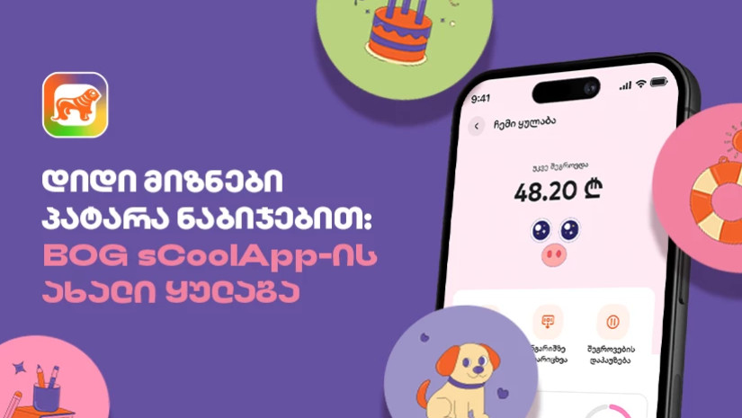 საქართველოს ბანკი მოსწავლეებზე ზრუნვას აგრძელებს. დღეიდან, მოსწავლეებს სპეციალურად მათთვის შექმნილ აპლიკაცია -  sCoolApp-ში განახლებული გოჭი-ყულაბა დახვდებათ.