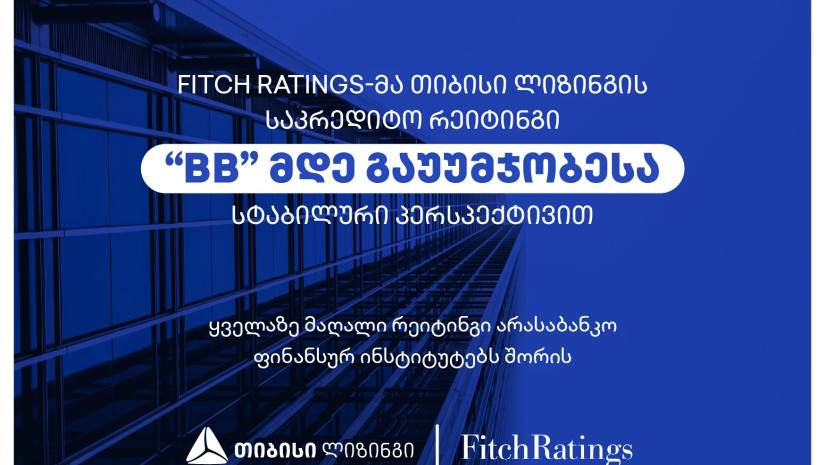 საერთაშორისო სარეიტინგო სააგენტო, Fitch Ratings-მა თიბისი ლიზინგის საკრედიტო რეიტინგი „BB-“-დან „BB“-მდე, სტაბილური პერსპექტივით გააუმჯობესა.