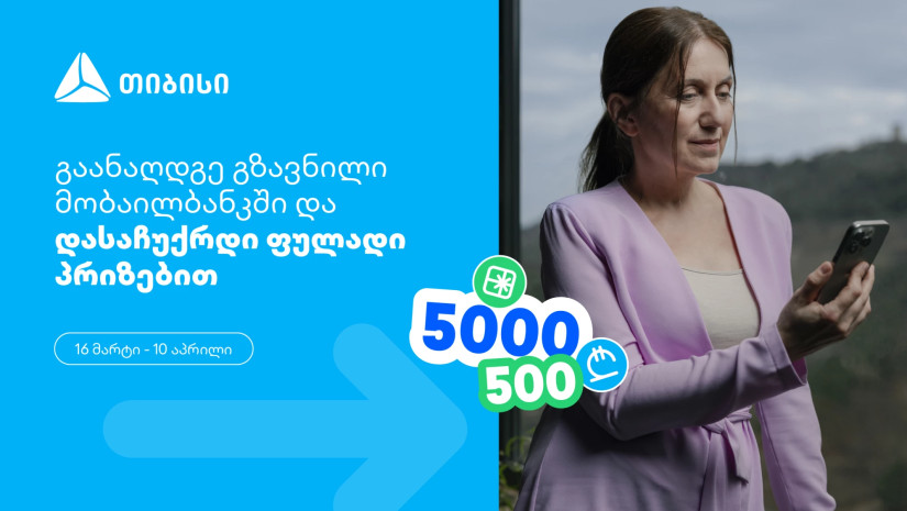 16 მარტიდან 10 აპრილის ჩათვლით, გაანაღდე ფულადი გზავნილი მობაილბანკში და მიიღე შესაძლებლობა, ერთგულ ყულაბაში დასაჩუქრდე 500 ლარით ან სუპერ პრიზით- 5 000 ლარით.