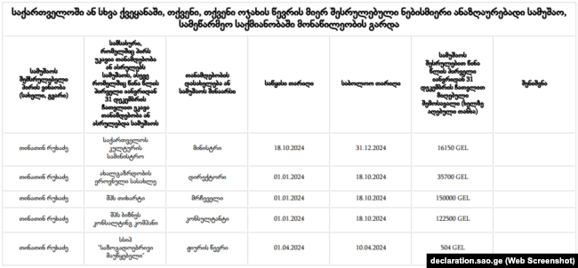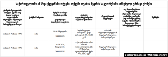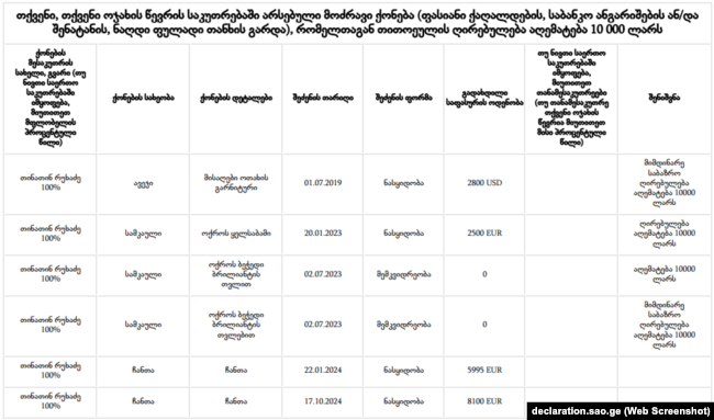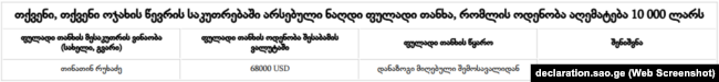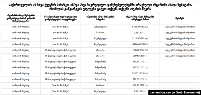 ამონარიდი თინათინ რუხაძის დეკლარაციიდან