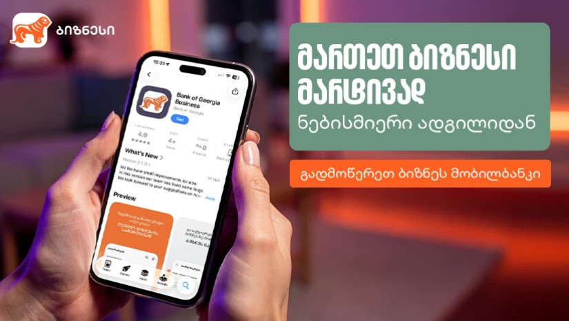 გადმოწერეთ ყოველთვის ახალი ბიზნეს მობილბანკი და ისარგებლეთ ბიზნეს ინტერნეტბანკით საქმიანობის უფრო მარტივად, სწრაფად და ეფექტურად სამართავად.