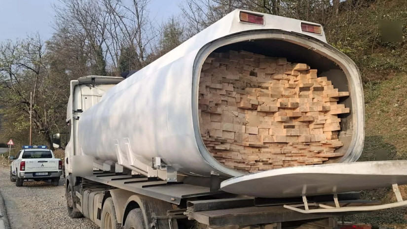 „მესტიიდან ზუგდიდის მიმართულებით მოძრავი ბენზინმზიდი დეპარტამენტის თანამშრომლებმა წალენჯიხის მუნიციპალიტეტის დაბა ჯვარში გააჩერეს. სამართალდამრღვევს ავტოსატრანსპორტო საშუალების ძარაზე, ცისტერნაში სპეციალურად მოწყობილ სამალავში, სვანეთში უკანონოდ მოპოვებული და გადამუშავებული წიწვოვანი სახეობის 16 კუბური მეტრი მოცულობის პირველადი გადამუშავების პროდუქტი (ფიცარი) ჰქონდა განთავსებული.