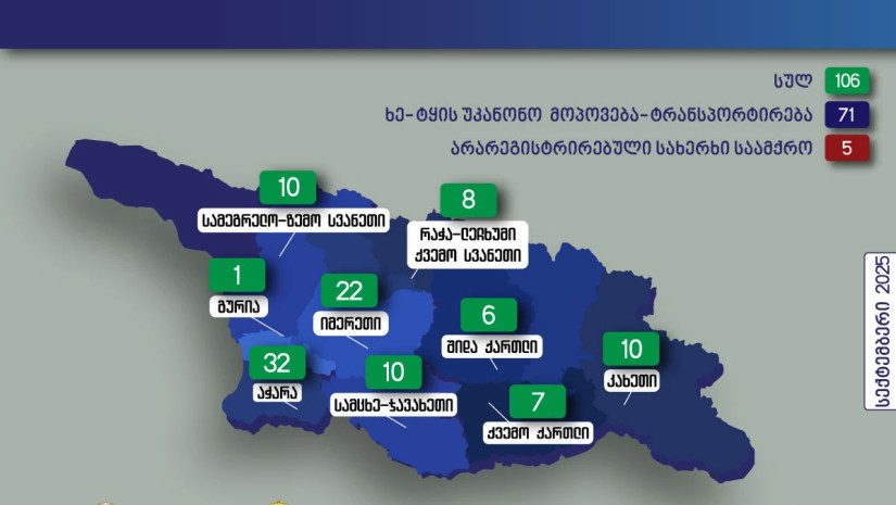 „მათ შორის 71 ხე-ტყის უკანონო მოპოვება-ტრანსპორტირებას ეხება, 35 კი, სახერხი საამქროების მიერ ტექნიკური რეგლამენტის დარღვევისა და უკანონო სახერხი საამქროების ფაქტებია. სამართალდარღვევებიდან 13 ფაქტი სისხლის სამართლის დანაშაულის ნიშნებს შეიცავს და მასალები, შემდგომი რეაგირების მიზნით, შესაბამის უწყებებში გადაიგზავნა.