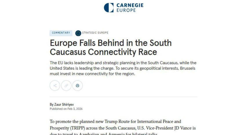 ევროპა სამხრეთ კავკასიის კავშირის რბოლაში ჩამორჩება, – ამ სათაურით Carnegie Europe ვრცელ სტატიას აქვეყნებს, სადაც საქართველოზეც არის საუბარი.