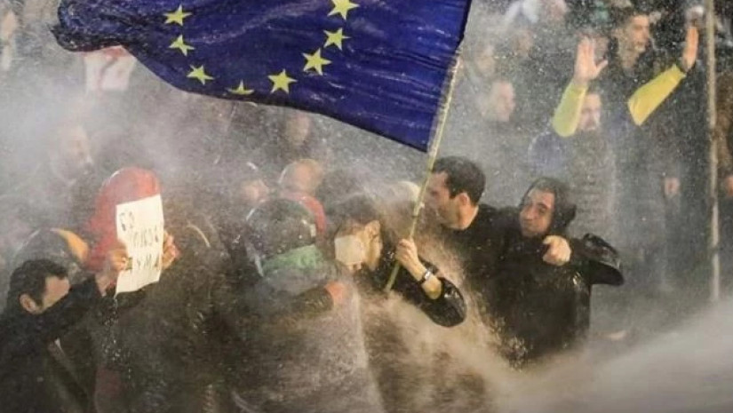 7-8 მარტს პარლამენტთან შეკრებილი მოქალაქეები “ქართული ოცნების” მიერ რუსული კანონის პირველი მოსმენით მიღებას აპროტესტებდნენ და მის გაწვევას ითხოვდნენ. ფოტოც აქციის მონაწილეების წყლის ჭავლით დაშლისას არის გადაღებული.