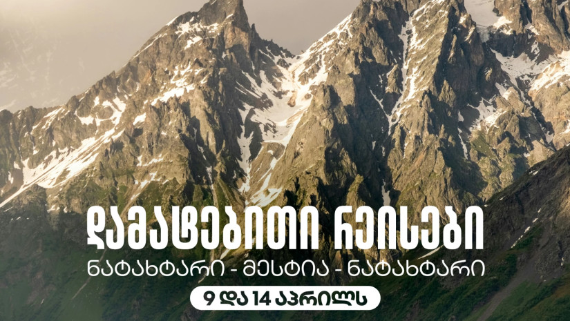 14 აპრილი: ნატახტარი - მესტია, გაფრენა - 16:00 საათზე, მესტია - ნატახტარი გაფრენა - 17:20 საათზე.
