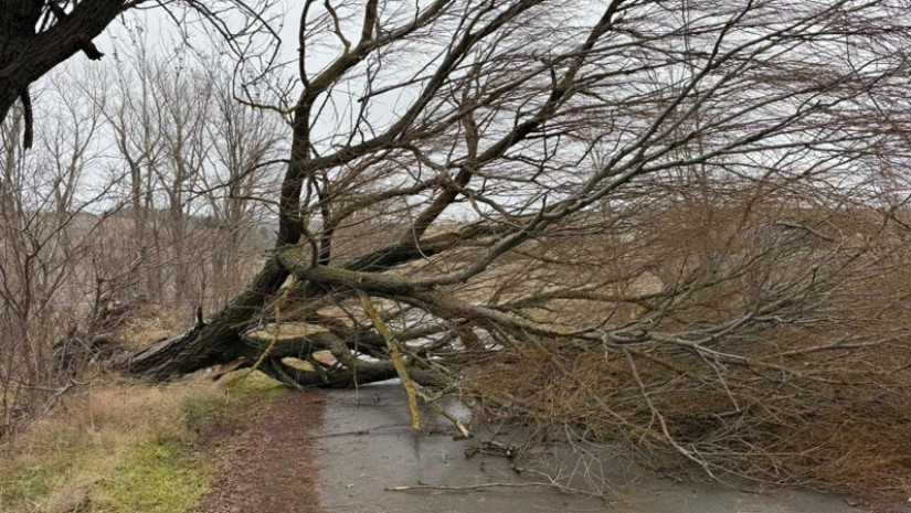 ძლიერი ქარის შედეგად ასევე მოგლეჯილია ხეები და ელექტროგადამცემი ბოძები.