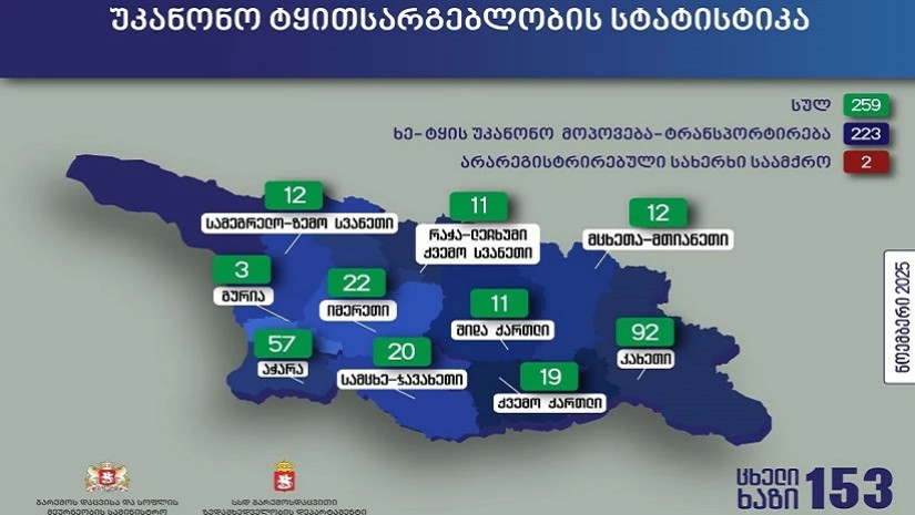 რაც შეეხება მიმდინარე წლის სტატისტიკას, 2025 წლის 11 თვეში დეპარტამენტის თანამშრომლებმა ქვეყნის მასშტაბით უკანონო ტყითსარგებლობის 1653 ფაქტი გამოავლინეს. დალუქულია 57 უკანონო სახერხი საამქრო.