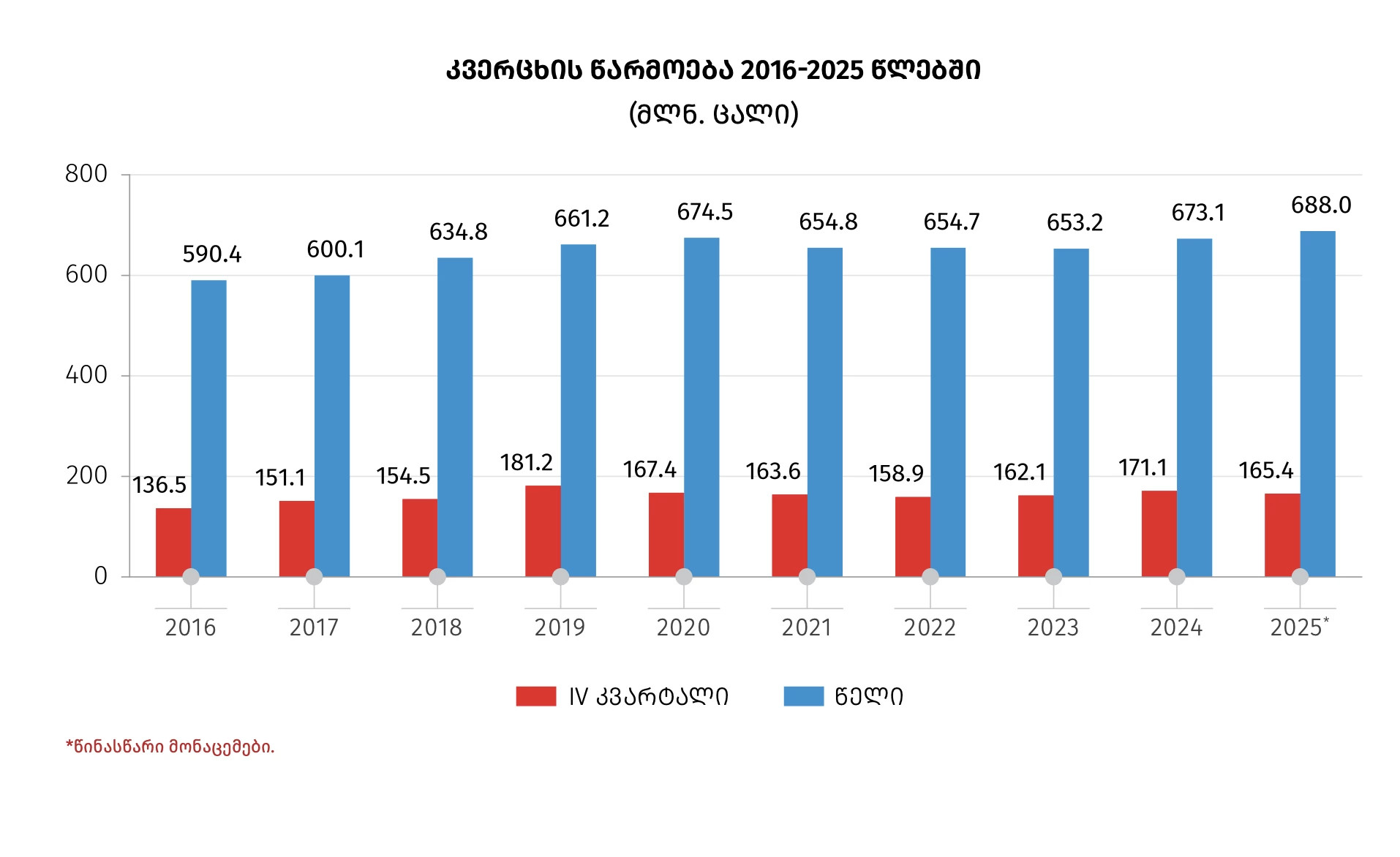 „წინასწარი მონაცემებით, 2025 წლის IV კვარტალში რძის წარმოებამ 97.2 მილიონი ლიტრი შეადგინა, რაც წინა წლის ანალოგიურ მაჩვენებელზე 6.4 პროცენტით ნაკლებია. 2025 წლის რძის წარმოების წლიური მაჩვენებელი 545.7 მილიონი ლიტრით განისაზღვრა, რაც 5.0 პროცენტით ჩამორჩება 2024 წლის შესაბამის მაჩვენებელს.