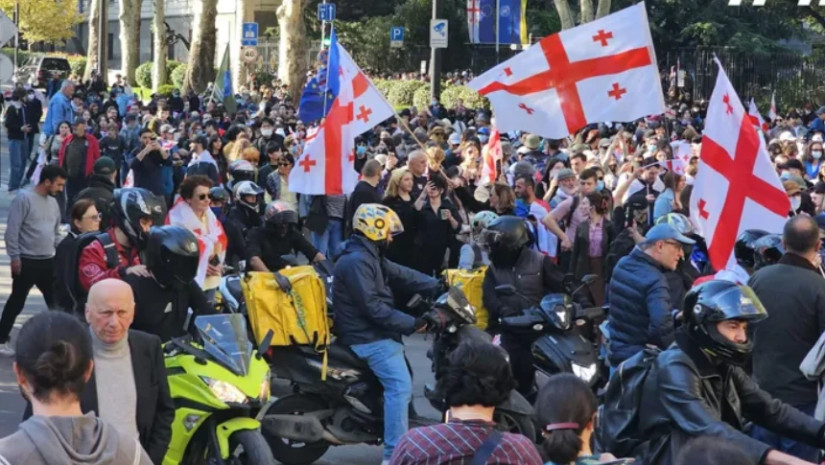 თსუ-ს პირველი კორპუსიდან თავისუფლების მოედნის მიმართულებით სტუდენტების საპროტესტო მსვლელობა მიმდინარეობს.