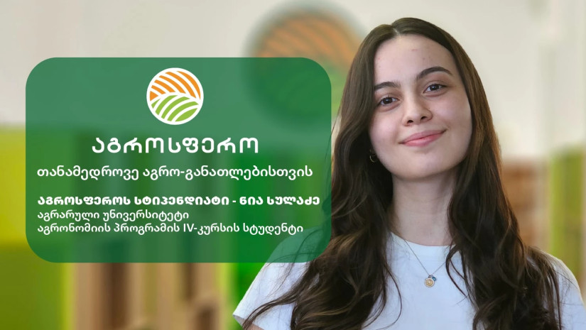 გადავწყვიტეთ, შემოგთავაზოთ ინტერვიუების სერია, რომელიც „აგროსფეროს“ სტიპენდიატებს ახლოდან გაგაცნობთ. ამჯერად საქართველოს აგრარული უნივერსიტეტის აგრონომიის პროგრამის IV კურსის სტუდენტს, ნია სულაძეს ვესაუბრეთ.