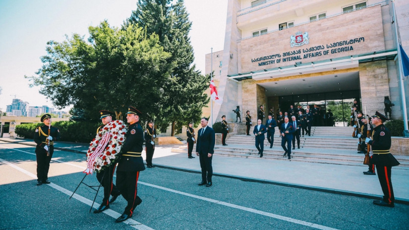 „სამინისტროს ეზოში, საქართველოს ერთიანობისთვის დაღუპული პოლიციელების მემორიალი ყვავილებით შეამკეს და 2008 წლის ომის გმირების ხსოვნას პატივი მიაგეს შინაგან საქმეთა სამინისტროს სხვადასხვა დეპარტამენტის