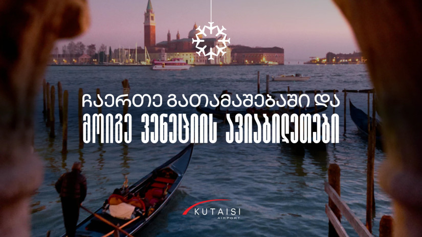 საქართველოს აეროპორტების გაერთიანება ქუთაისი–ვენეცია–ქუთაისის მიმართულებით 2 ავიაბილეთს ათამაშებს - ინფორმაციას აეროპორტების გაერთიანება ავრცელებს.