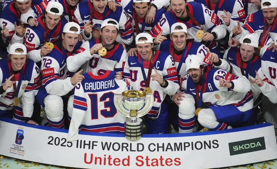 2025 წელს ყინულის ჰოკეიში მსოფლიო ჩემპიონი აშშ-ის ნაკრები გახდა, რომელმაც ისტორიაში მესამე ტიტული მოიპოვა. აღსანიშნავია, რომ აშშ-ის ნაკრებს მსოფლიო ჩემპიონატის ოქროს მედალი 1960 წლის შემდეგ არ მოუპოვებია. ფინალში ამერიკელებმა შვეიცარიას მოუგეს.