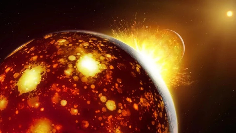 დაახლოებით 4,5 მილიარდი წლის წინ, ერთ საბედისწერო დღეს, პროტოდედამიწას მარსის ზომის სხეული, სახელად თეია დაეჯახა და ორივე მათგანი ქვისა და ლითონების გამდნარ არეულობად იქცა. როგორც კი ნარჩენი ნამსხვრევები კვლავ შეიკრა, ორბიტაზე ჩაჭედილი დარჩა ორი ობიექტი — დედამიწა და თავის მთვარე.