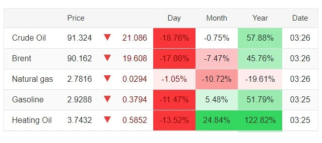 შეერთებული შტატების პრეზიდენტის განცხადებიდან გასული არასრული საათის განმავლობაში ბირჟაზე ნავთობის ფასები თითქმის 20%-ით დაეცა.