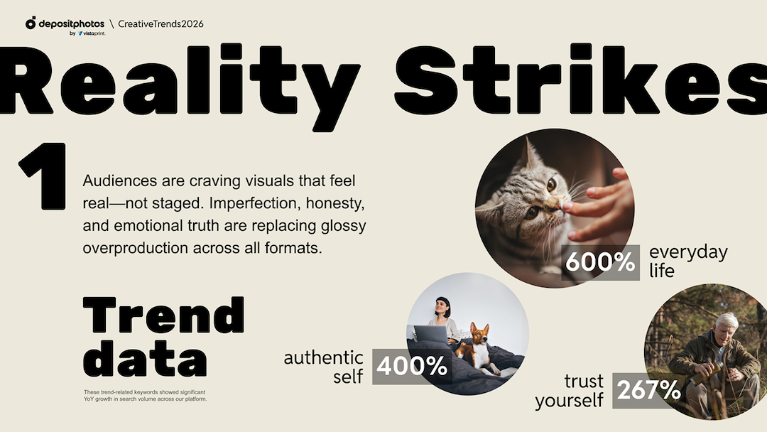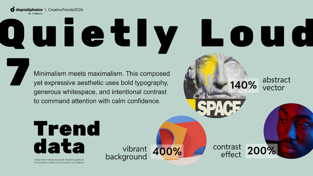 DepositPhotos ვარაუდს, რომ მომავალ წელს შემოქმედებითი ინდუსტრია ქაოსურ სამყაროში ყვირილს აღარ დაიწყებს ყურადღების მისაპყრობად და იმას მიანიჭებს უპირატესობას, რისი თქმაც ღირს. ამგვარად, Creative Trends 2026: The Soft Rebellion-ის მოხსენება სანახაობებზე მეტად, გულწრფელობაზეა ორიენტირებული, ბრწყინვალებაზე მეტად პრაქტიკულობაზე, ხრიკებზე მეტად მიზნებზე… შესაბამისად, 2026 წელს კითხვა ის კი არ არის, თუ როგორ უნდა მიიღონ მეტი შედეგი, არამედ ის, თუ როგორ მივიდნენ მნიშვნელოვან შედეგებამდე.