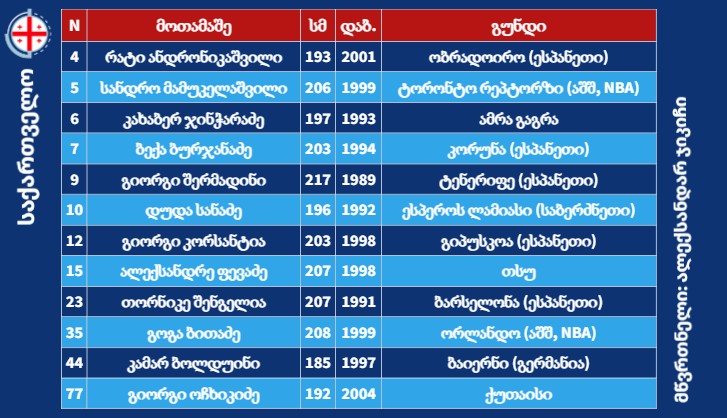 „საქართველოს ტანმღალი ნაკრები ჰყავს. ეცდება ტემპი დააგდოს, ქულები ფარქვეშიდან მოიპოვოს. შეტევით მოხსნებში საქართველო გამორჩეულია, ამიტომ მოხსნებზე ბევრი უნდა ვიმუშაოთ. მათ შესარჩევ ეტაპზე შევხვდით, თუმცა სხვა შემადგენლობა ჰყავდათ. ევრობასკეტზე დაემატათ მამუკელაშვილი და ბითაძე, რაც დიდი ძალაა“.