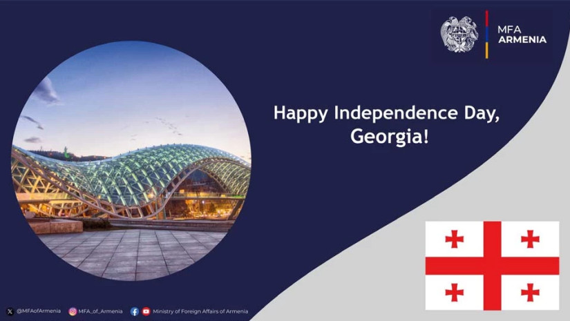 გულითადად ვულოცავთ საქართველოს დამოუკიდებლობის დღეს. ჩვენ ვაფასებთ ჩვენს სტრატეგიულ პარტნიორობას და დარწმუნებულები ვართ, ჩვენს ქვეყნებს შორის ძმური ურთიერთობები განაგრძობს გაღრმავებას ჩვენი ხალხის საკეთილდღეოდ“, – აღნიშნულია სომხეთის საგარეო უწყების მისალოც ტექსტში.