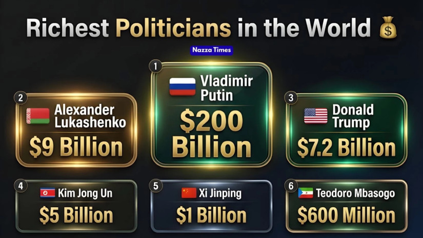 Yahoo Finance-ს 2025 წლის მონაცემებით, მსოფლიოში ყველაზე მდიდარი პოლიტიკური ფიგურა რუსეთის პრეზიდენტი ვლადიმერ პუტინია. მიუხედავად იმისა, რომ მისი ფინანსები საიდუმლოებით არის მოცული, Hermitage Capital Management-ის ყოფილი აღმასრულებელი დირექტორის, ბილ ბრაუდერის შეფასებით, მისი ქონება დაახლოებით 200 მილიარდ დოლარს შეადგენს.