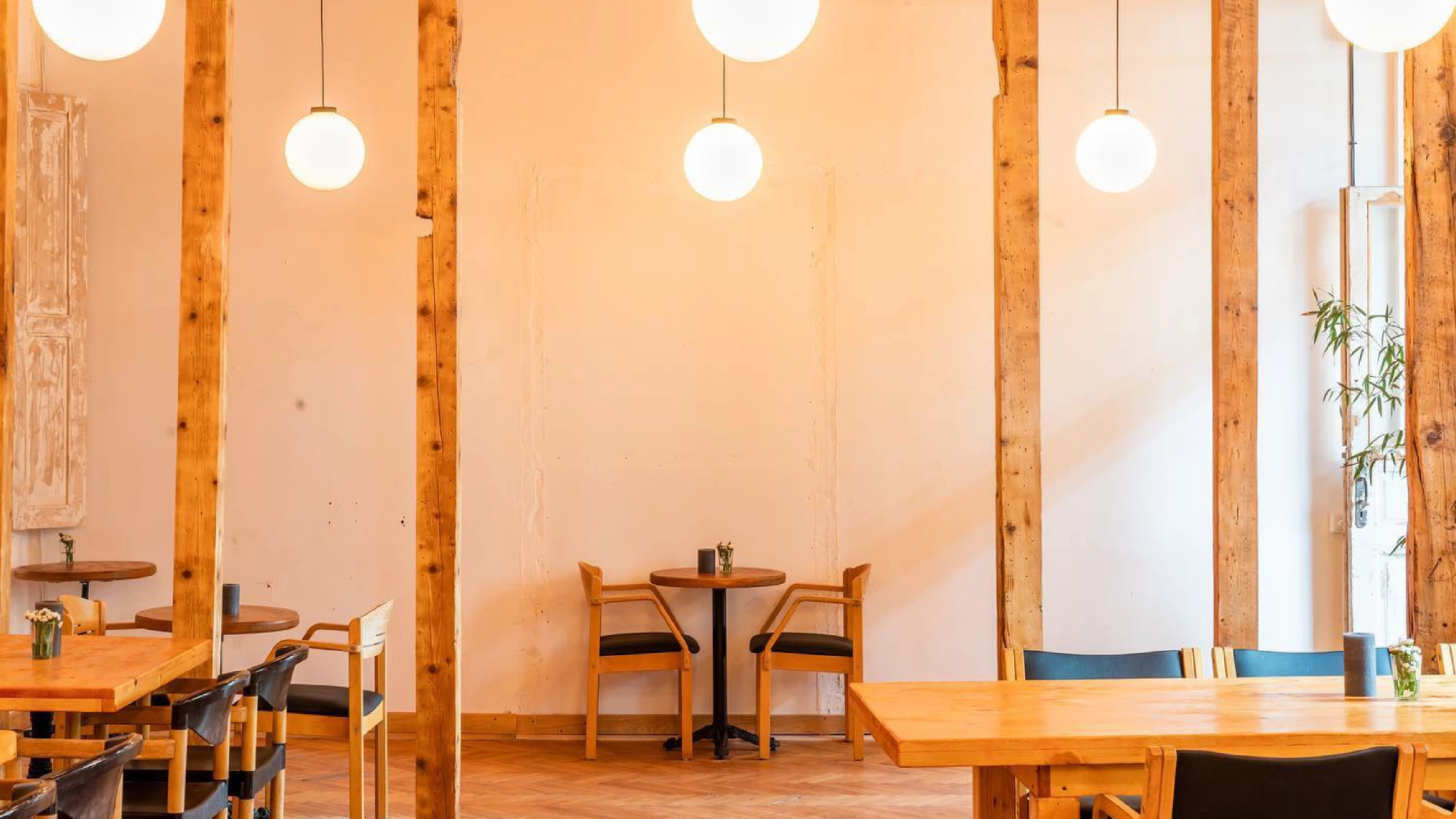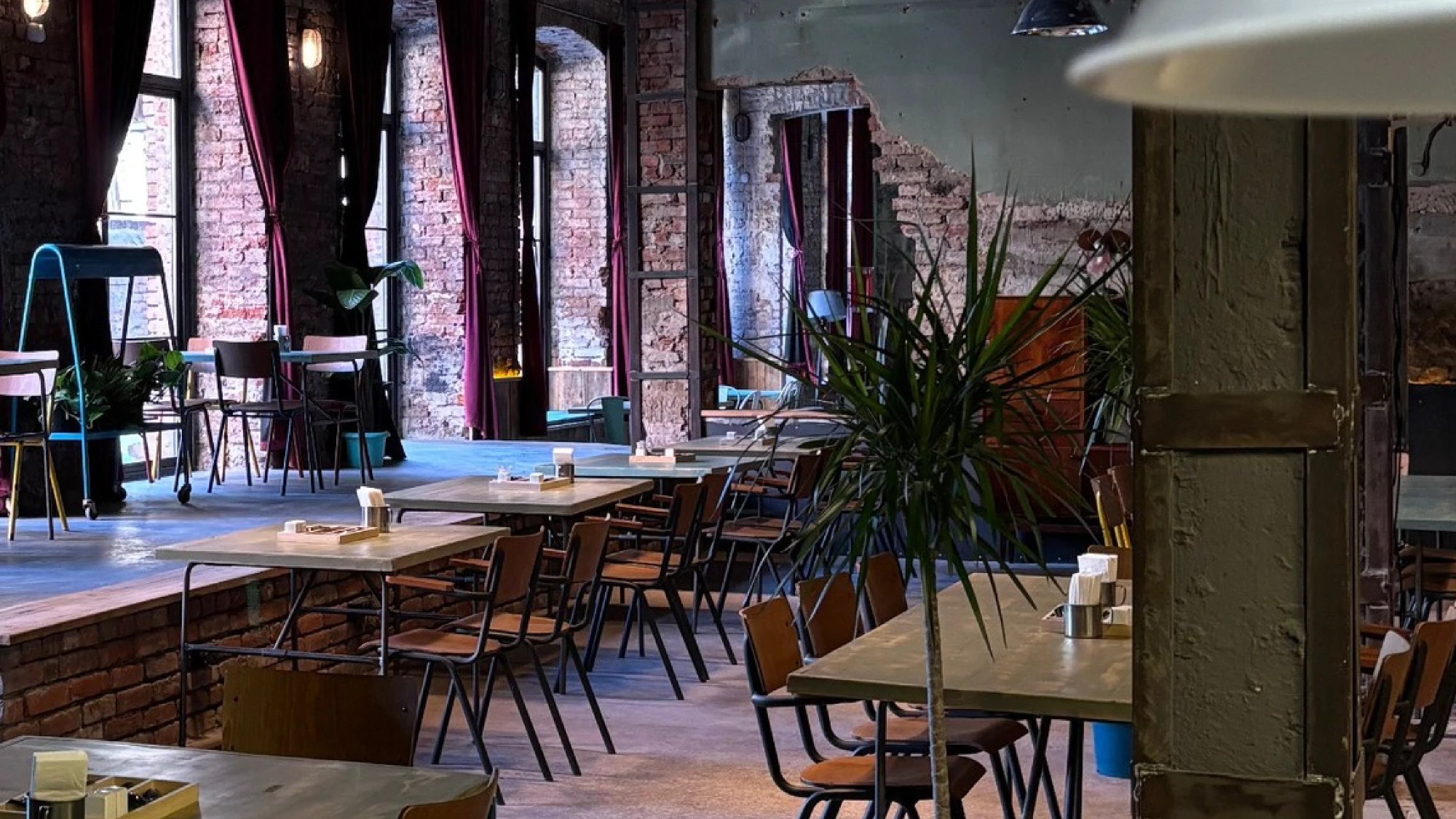 Similar to dishes, the interior is also minimalistic and simple. The restaurant is located inside the former tobacco factory, and the initial looks of the factory are preserved to the extent possible. These features make “Zeche” even more attractive and unique.